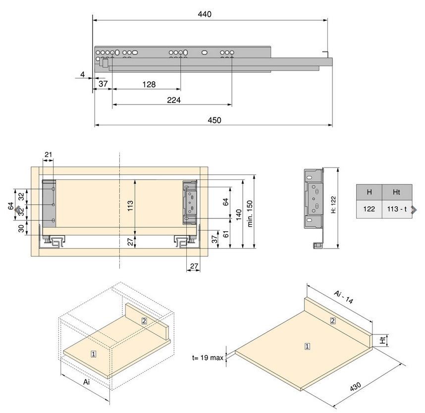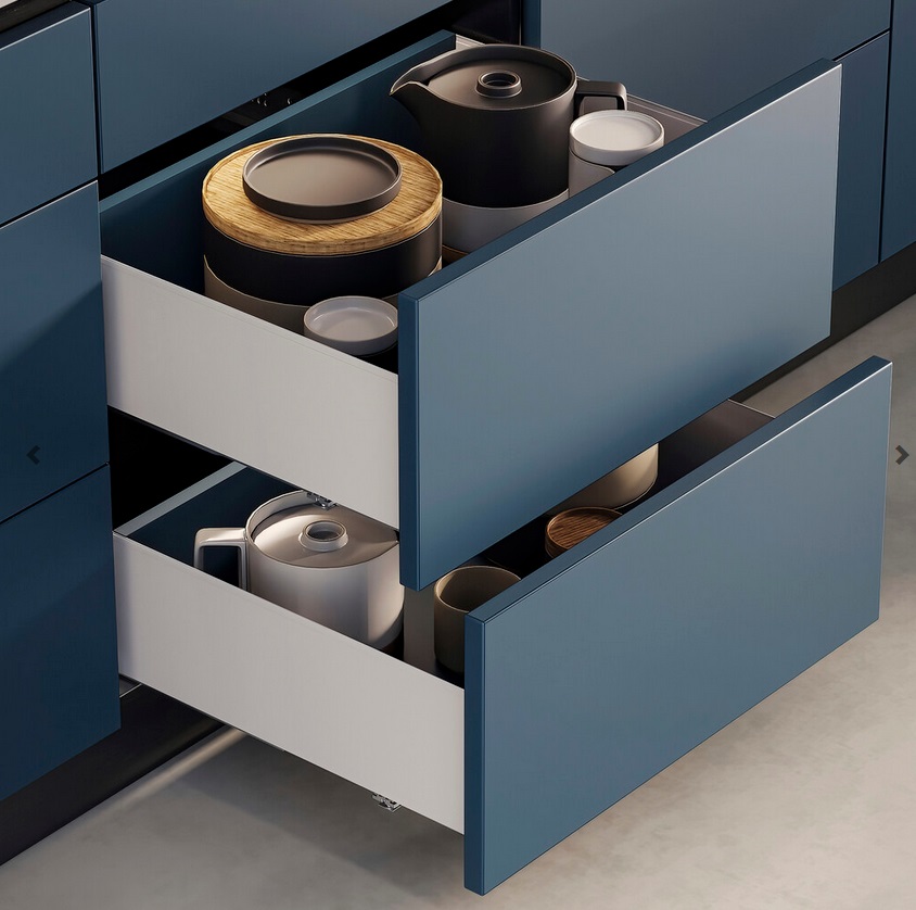 Simplex atvilktne ar metāla malām, augstums ir 122 mm, elegants dizains, paredzēts atvilktnēm ar 440 mm dziļumu, piedāvājot plašu iekšējo telpu un modernu apdari.