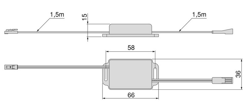 Izgatavots no plastmasas ar melnu apdari, komplektā ietilpst ieejas un izejas kabelis, abi 1,5 m gari ar Miniled savienojumiem un visiem uzstādīšanas elementiem.