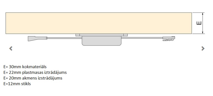 Tas ir piemērots uzstādīšanai uz dažādām virsmām un biezumiem, piemēram, koka (E ≤ 30 mm), plastmasas (E ≤ 22 mm), dabīgā akmens (E ≤ 20 mm) vai stikla (E ≤ 12 mm). Tomēr tas nav piemērots lietošanai uz metāla virsmām vai spoguļiem.