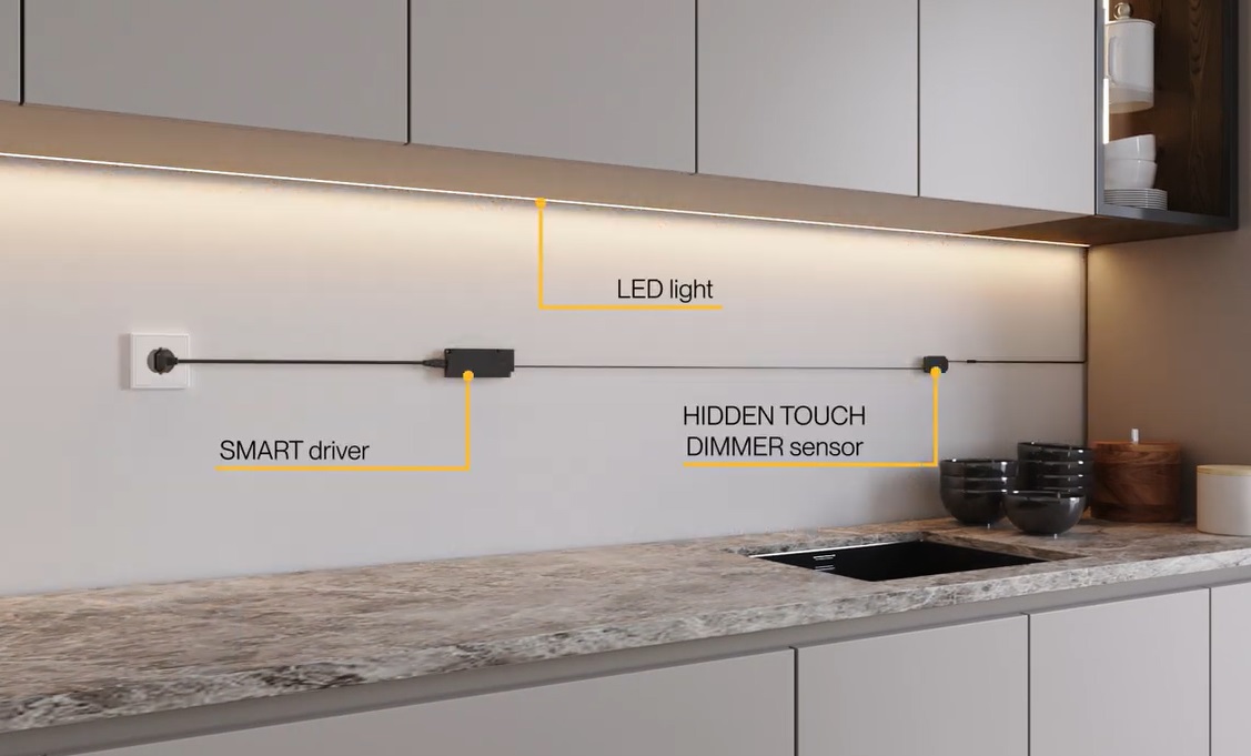Slēptais kontakta sensors, kas paredzēts LED gaismekļu ieslēgšanai un izslēgšanai ar 12 V vai 24 V līdzstrāvu, ideāli piemērots lietošanai gultas galvgaļos vai vietās, kur nepieciešama precīzāka pārslēgšana, vienlaikus slēpjot sensoru.
