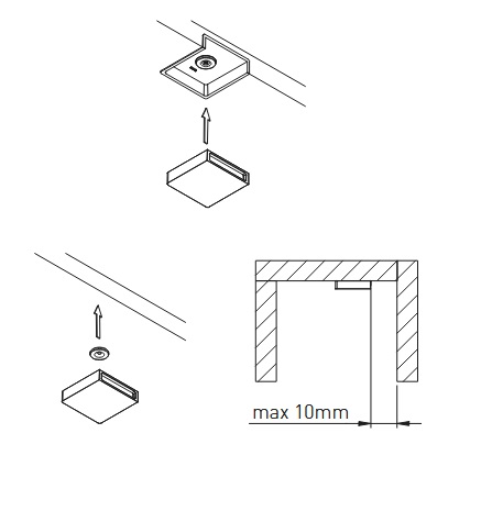 Slēdzis ir iebūvēts mēbeļu plāksnē un smalki saplūst ar tās virsmu. Tas netraucē lietošanu un paliek praktiski neredzams.