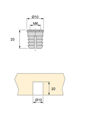Neilona muciņa M6, D-10mm, L-10mm (4 gab.)