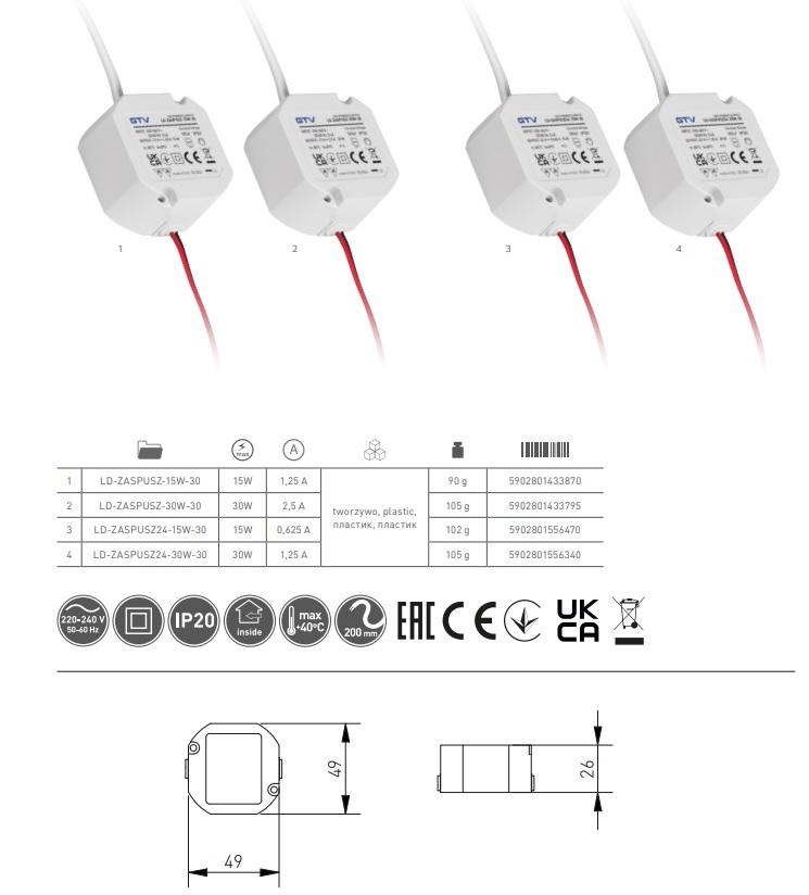 LED transf. apaļais DC24V , 30WArtikuls: ZASPUSZ24-30WKrāsa: Balta