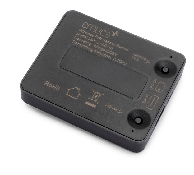 Izgatavots no melnas plastmasas, tas ir saderīgs ar viedajiem pārveidotājiem un 12 V līdzstrāvas vai 24 V līdzstrāvas LED gaismekļiem. Lai nodrošinātu ērtu uzstādīšanu, tam ir pievienota līmējoša metāla pamatne ar iebūvētiem magnētiem, kas ļauj emiteru viegli nostiprināt un noņemt uzlādēšanai, pārvietošanai vai attālinātai aktivizēšanai.