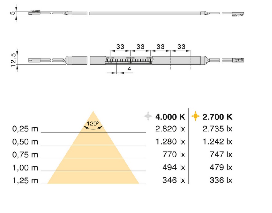 Lenta ir aptumšojama un to var nogriezt ik pēc 33 mm.