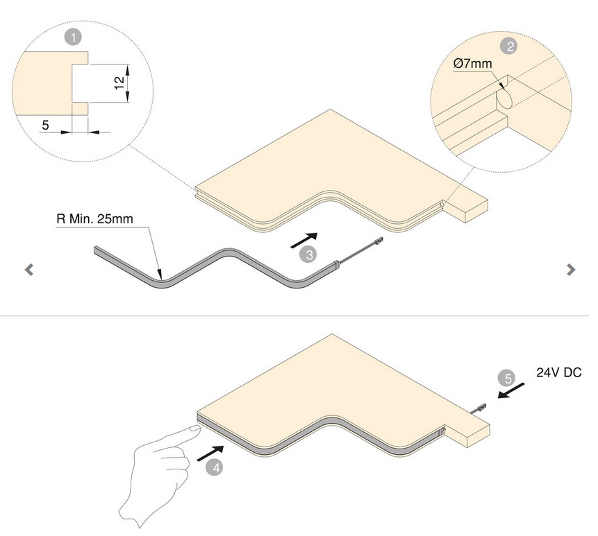 Neonlynx elastīgā LED lente paredzēta izliektu vai taisnu formu veidošanai.