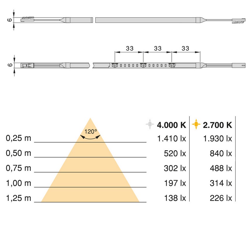 Lenta ir aptumšojama un to var nogriezt ik pēc 33 mm.
