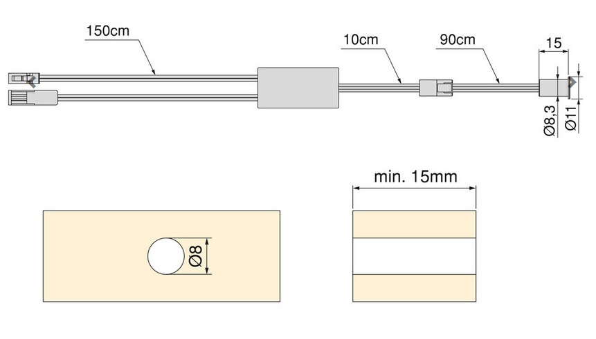 Tam ir kompakta galva, kas ir iestrādāta mēbelēs, ar 8 mm diametru.