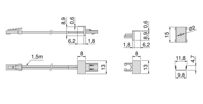 Barošanas kabelis ir 1,5 m garš un ietver Miniled savienotāju, kas piemērots 24 V pārveidotājam (nav iekļauts komplektā).