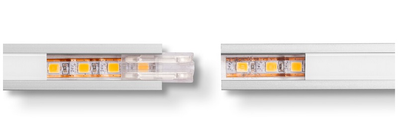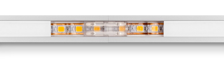 Tā pašfiksējošā konstrukcija neļauj tam slīdēt profilā, nodrošinot perfektu savienojumu jebkurā situācijā. Savienojumi ir stingri un izturīgi, pateicoties metāla savienotājiem, kas ļauj strāvai pāriet no viena gaismekļa uz otru.