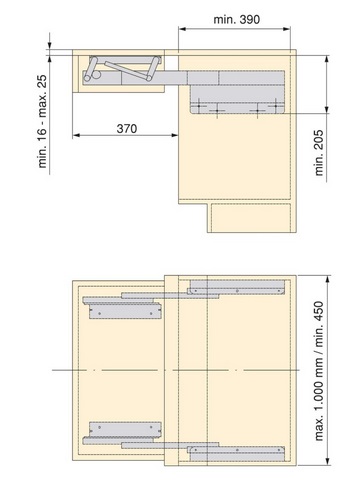 Opla Folding+39 kombinētais izvelkamais+paceļamais plaukta mehānisms, maks.1000mm